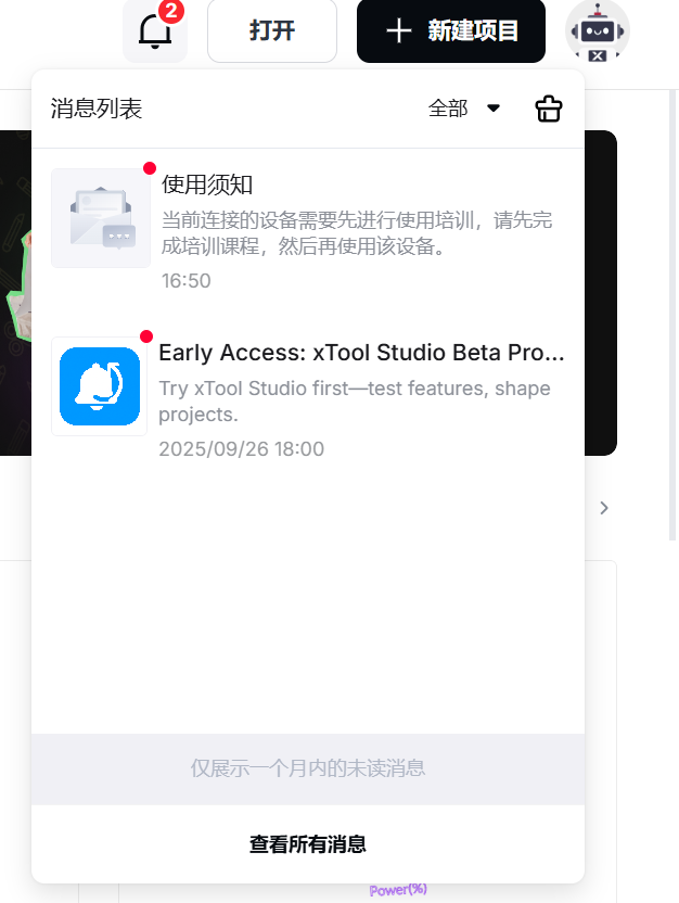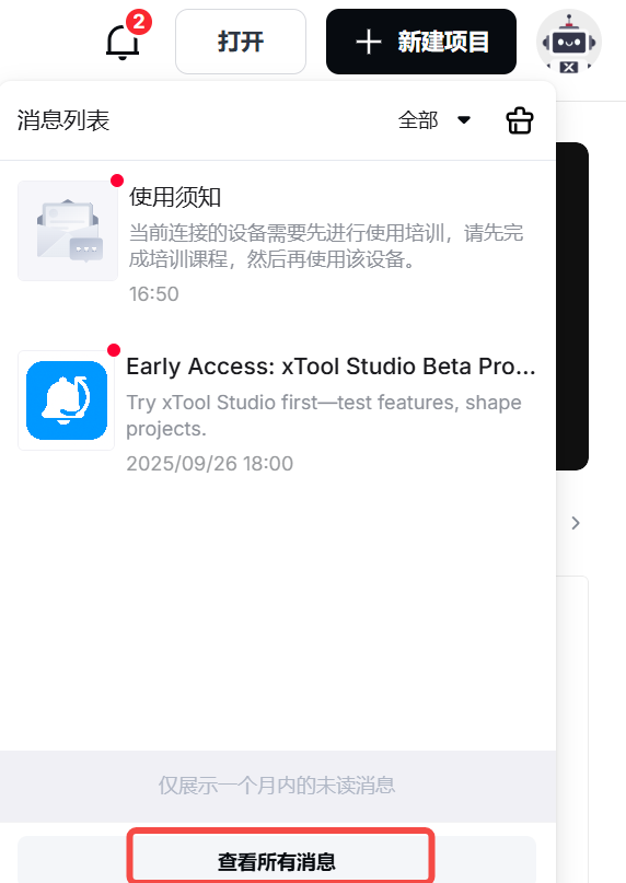 当您使用 xTool Studio 时,您将收到来自系统的消息,以帮助您更安全、更方便地使用机器。