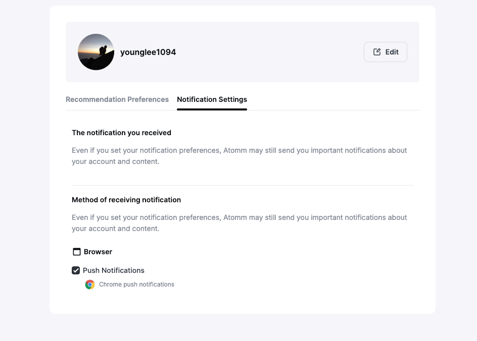 您可以单击消息设置来设置是否接收应用程序和活动消息。
