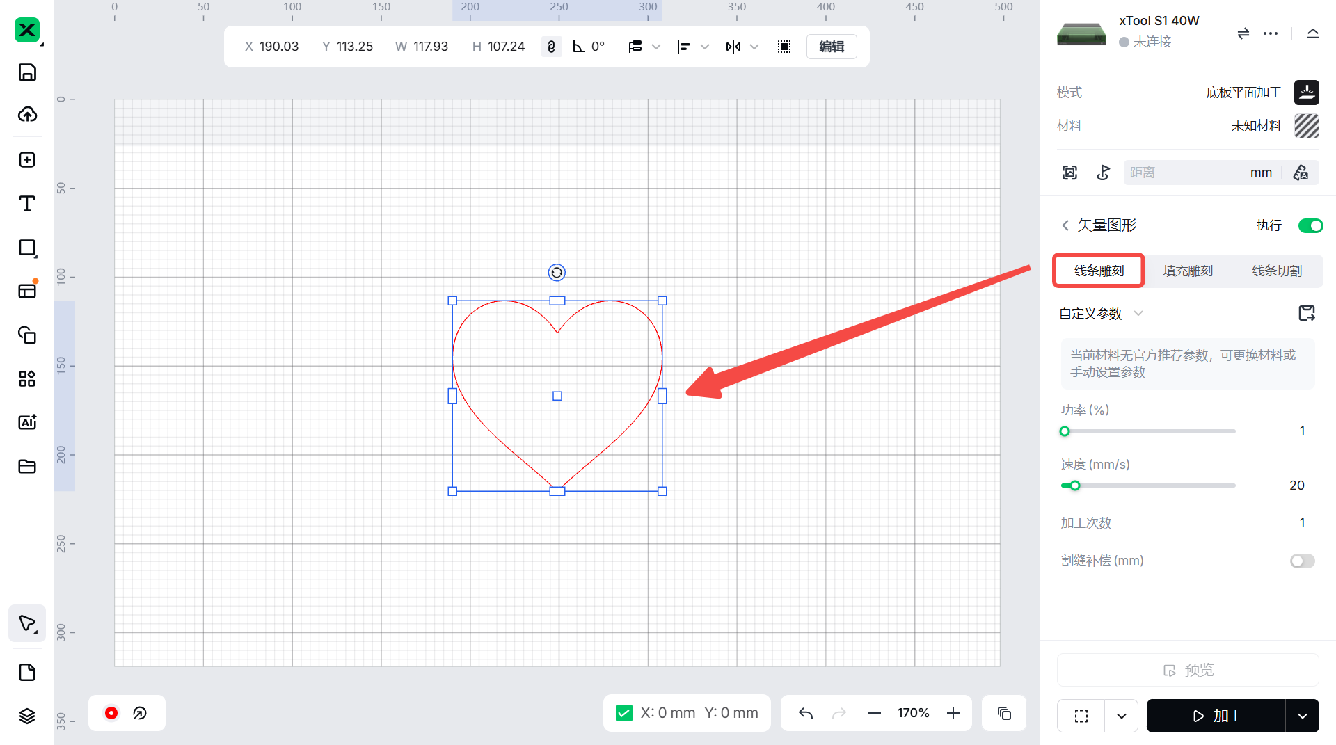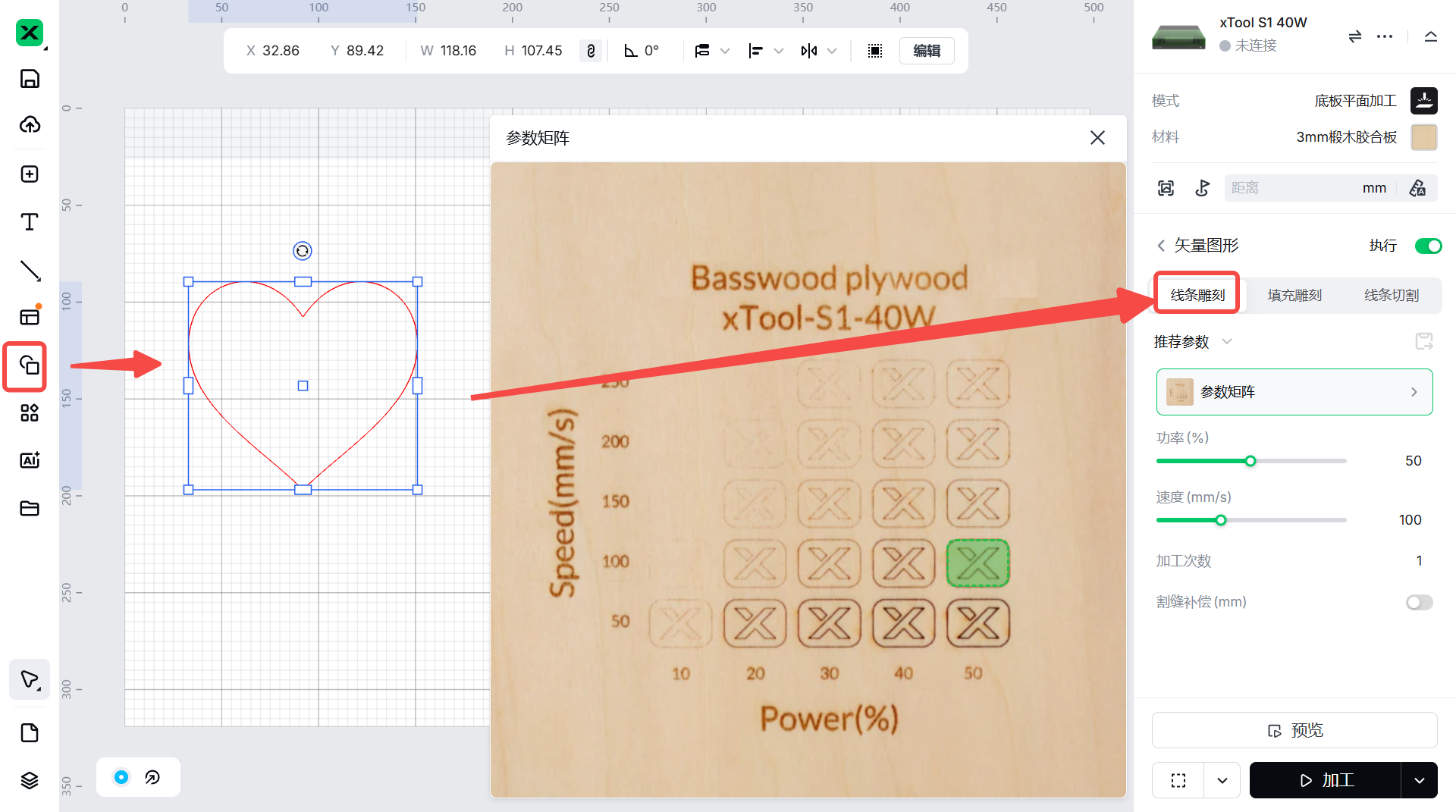 xTool Studio 的线条雕刻功能主要用于在激光过程中仅雕刻材料而不完全切割材料。