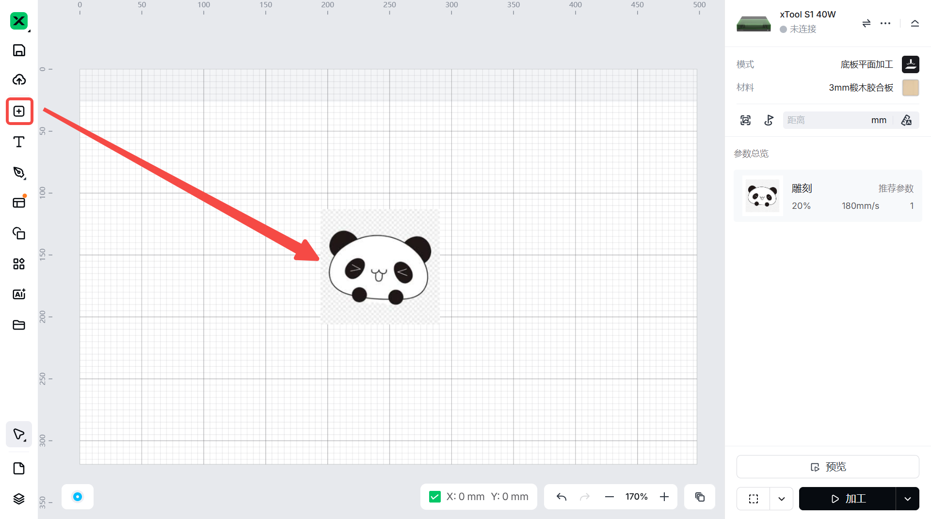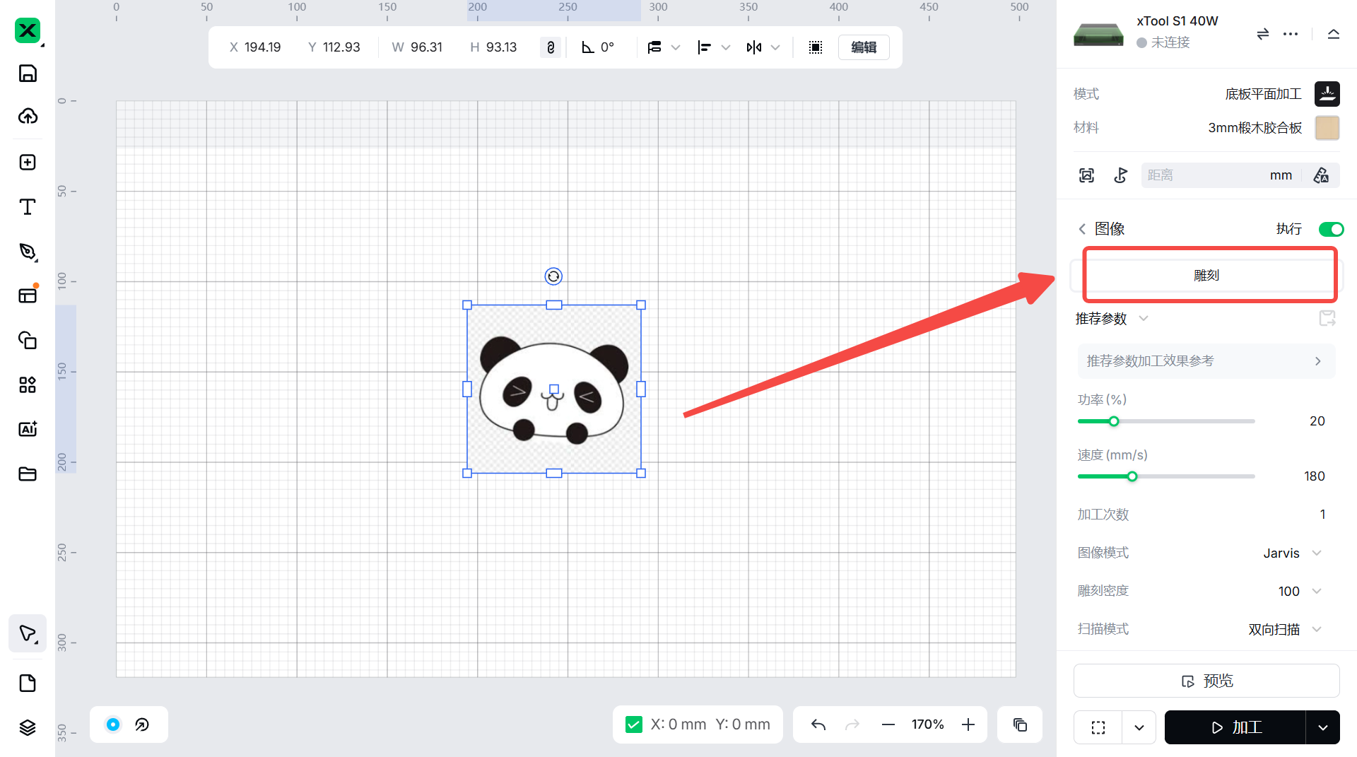 处理图像(PNG、JPG 或 WEBP 格式)时,应使用 xTool Studio 的位图雕刻功能。