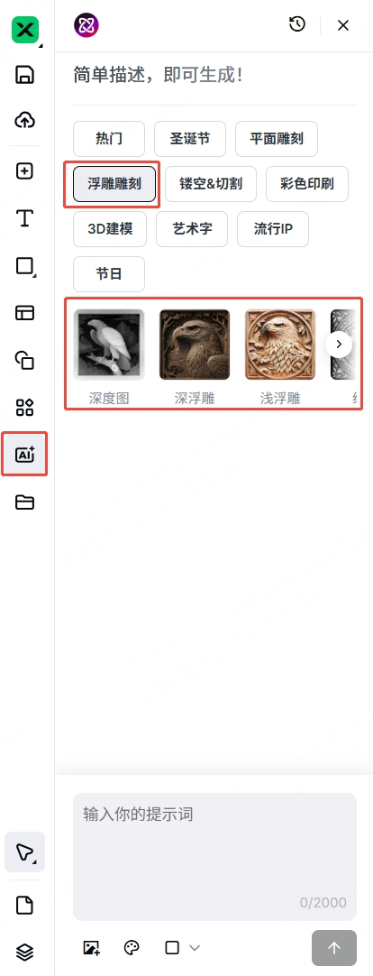 - 与浮雕的区别:浮雕侧重表面渐变(浅层效果),深雕强调深度挖掘(可达数毫米)。在 F2 Ultra 中,深雕常结合“Z轴下降距离”参数实现自动化深度控制。