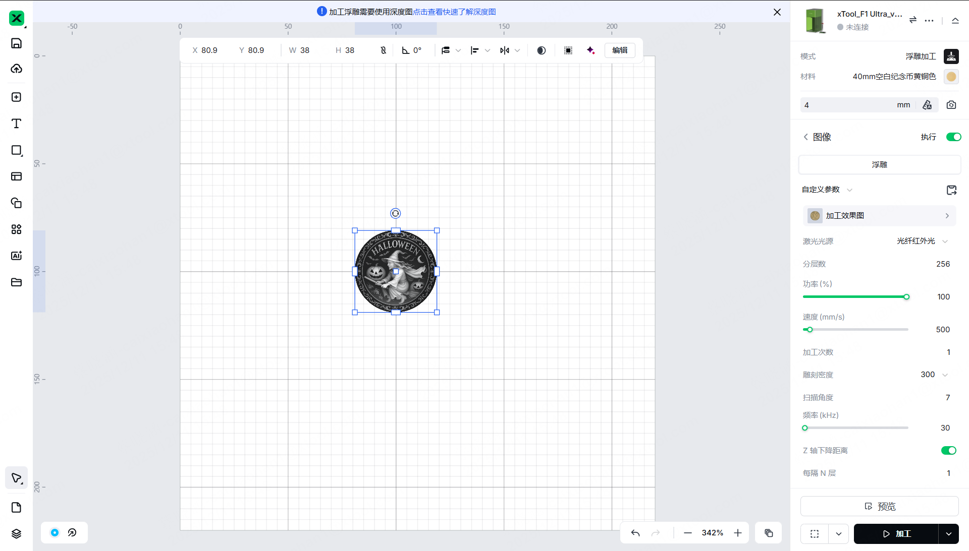 - 示例说明 :以 xTool F2 Ultra 为例,在浮雕模式下,设置分层数为 256 层,意味着软件会将灰度图分为 256 层,激光会根据每层的灰度值在材料表面进行雕刻,从而实现细腻的浮雕效果 。