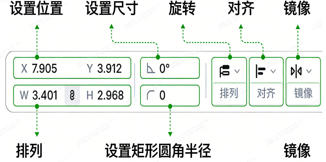 您可以通过输入对象左上边缘的x 和 y 坐标来精确设置对象的位置。