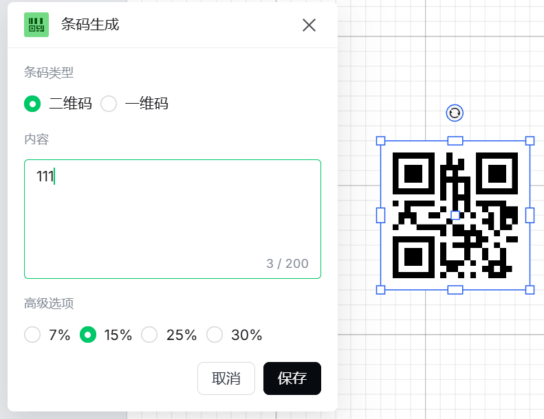 二维码:支持中英文字符、数字、标点符号、特殊符号