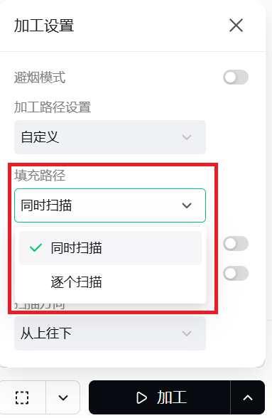 选择“全部一起”或“逐个”作为雕刻的扫描路径,效果如下: